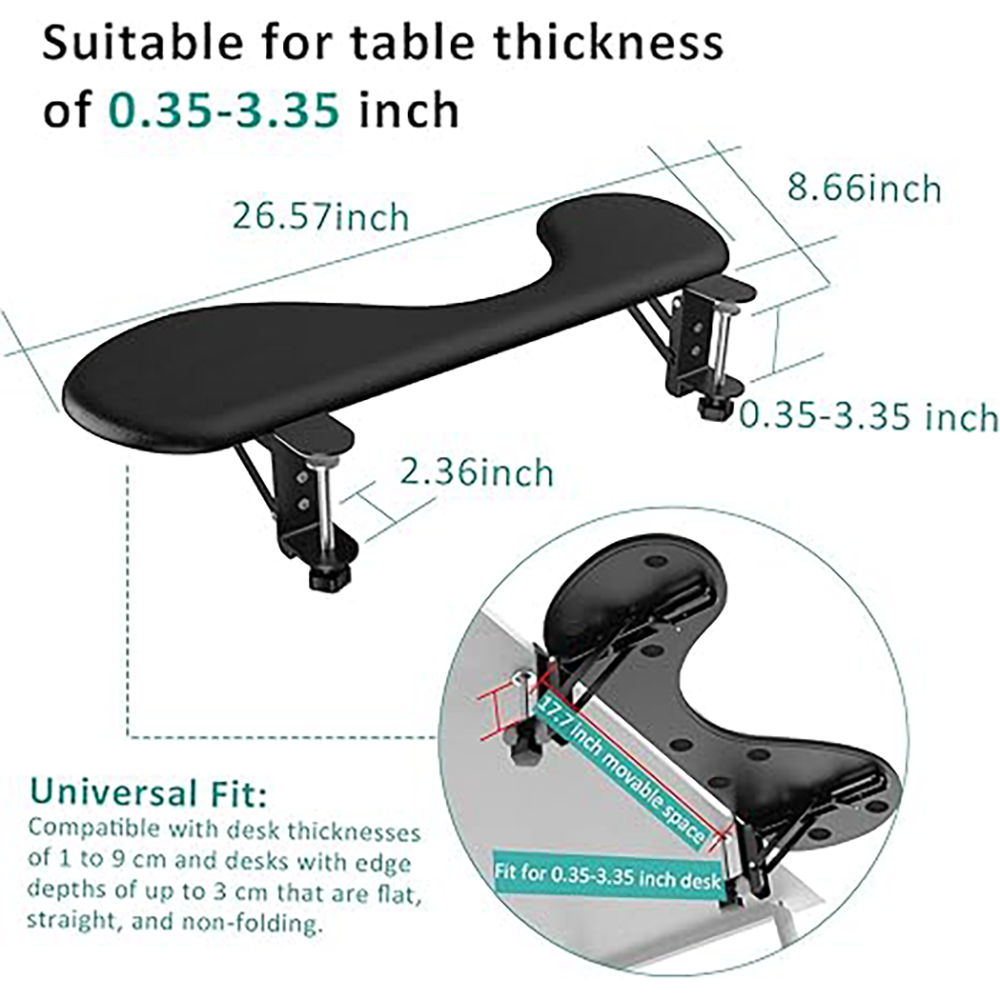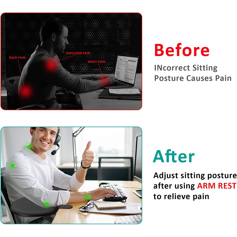 The ergonomic desk armrest typing support offers wide controllable area for computer work. It is comfortable to rest your arm for typing. Relieve stress on your wrists and shoulders.